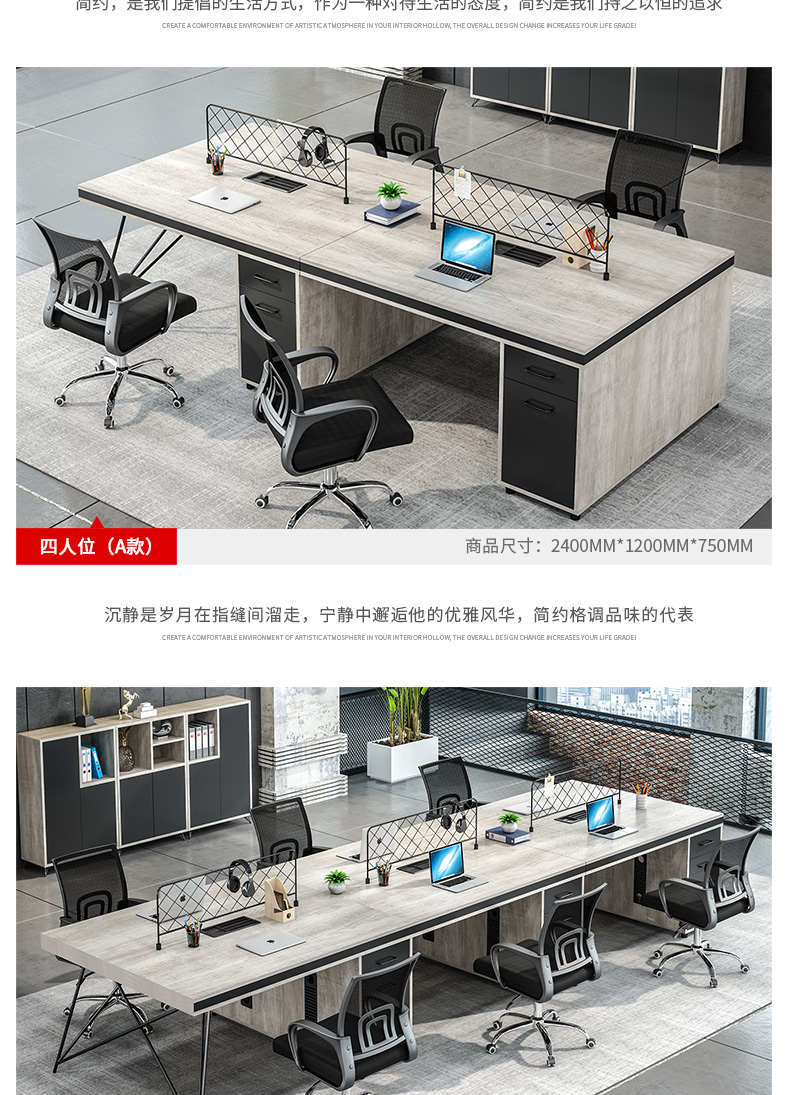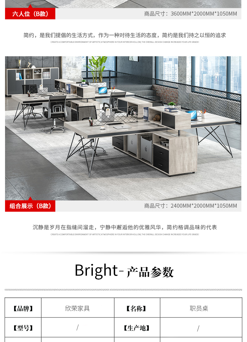 辦公桌椅組合簡約現代辦公家具創意員工位24/6人辦公室電腦職員桌