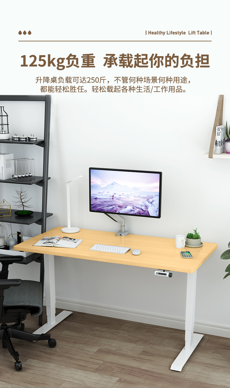 樂歌實木電動升降桌家居書桌站立辦公臺式電腦臺工作電腦桌E3/E4